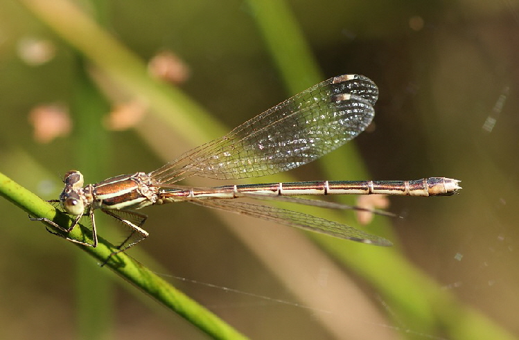 Ein unverkennbares Merkmal der Südlichen Binsenjungfer sind die zweifarbigen Flügelmale am Ende der Flügel.